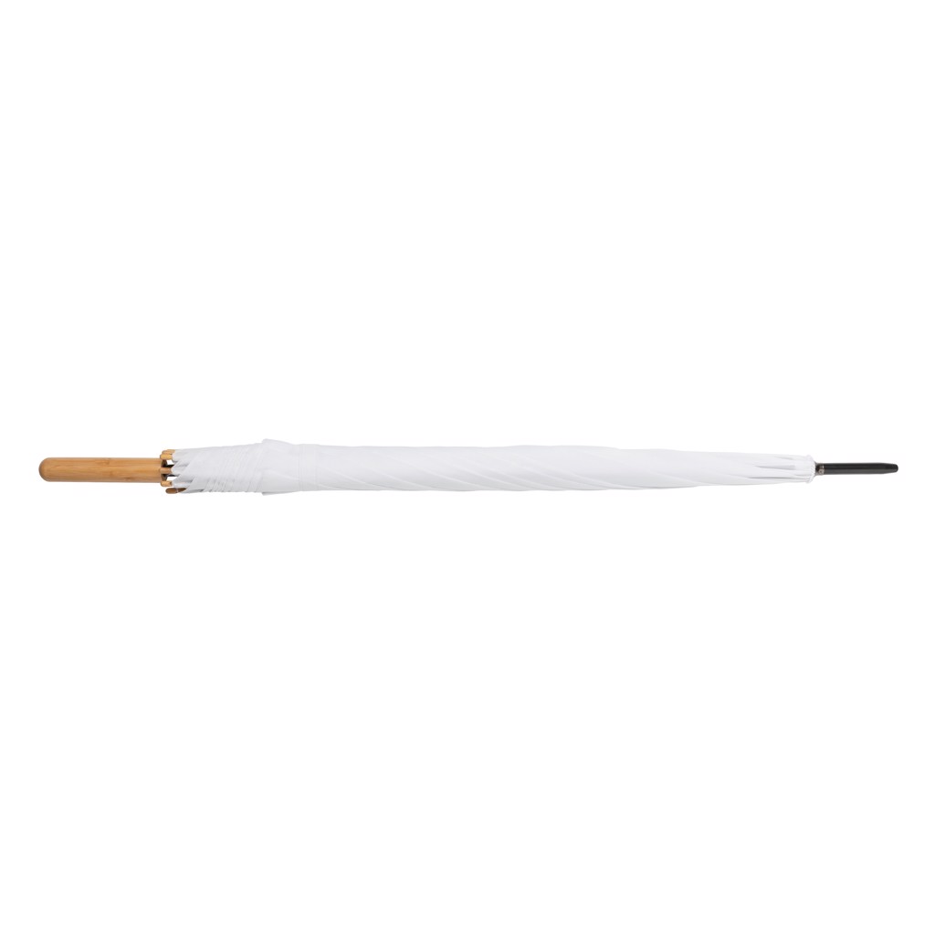 27" Impact AWARE™ RPET 190T auto open bamboo umbrella - White