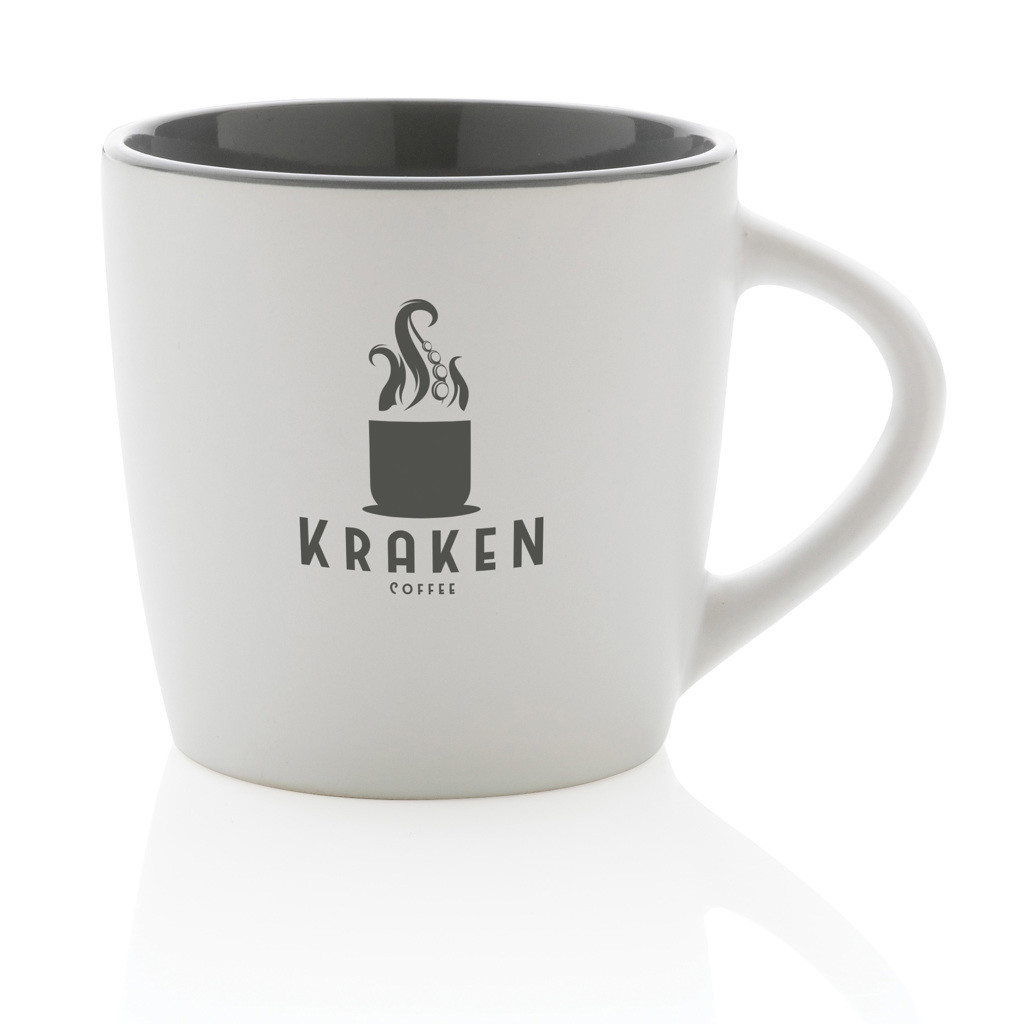 This ceramic mug features a fresh design with a matt exterior finish and interior colour accent. The mug is dishwasher safe and tested in accordance with EN12875-1 (at least 125 washing cycles for all decoration methods). Packed in a kraft gift box. Capacity 300ml.
