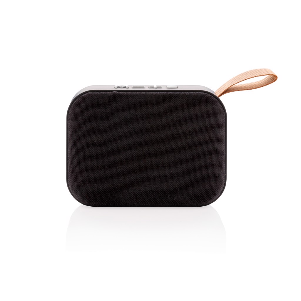 Wireless 3W speaker. ABS body with soft touch finish and fabric grill, the bottom of the speaker has rubber strips for improved sound quality and grip. The 300 mAh battery allows for a playing time up to 3 hours on one single charge and connection distance up to 10 metres with BT 5.0. Includes USB-C cable to charge the speaker. Compatible with all mobile phones.
