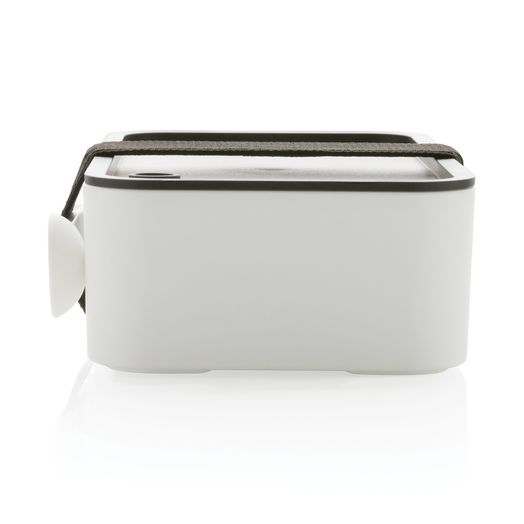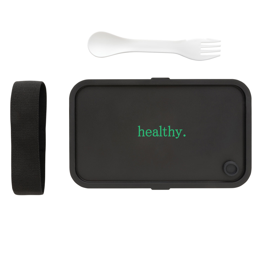 This stylish and sturdy lunchbox fits perfectly with a healthy lifestyle! It is big enough for carrying sandwiches and delicious salads. Made with 93% GRS certified recycled PP, GRS certification ensures a completely certified supply chain of the recycled materials. Including a handy spork and elastic strap. Capacity 1.2 litre. The lunch box is easy to clean, but should not be put in the dishwasher or used in the microwave.