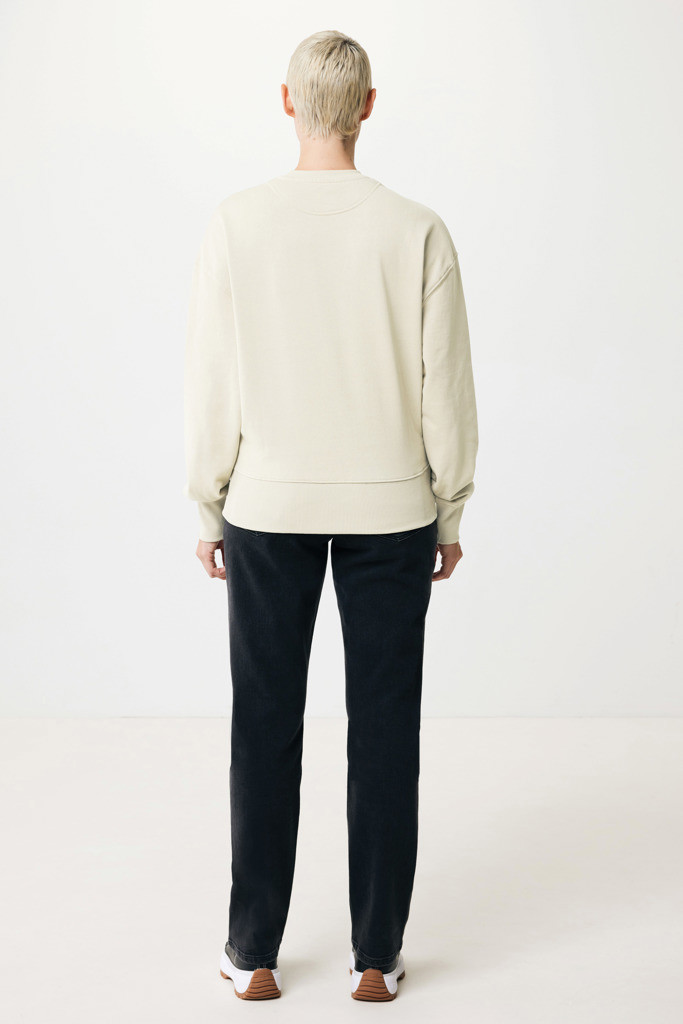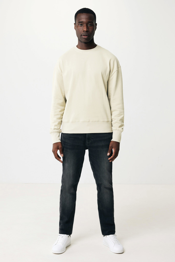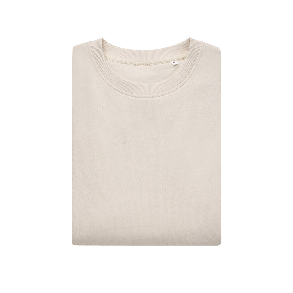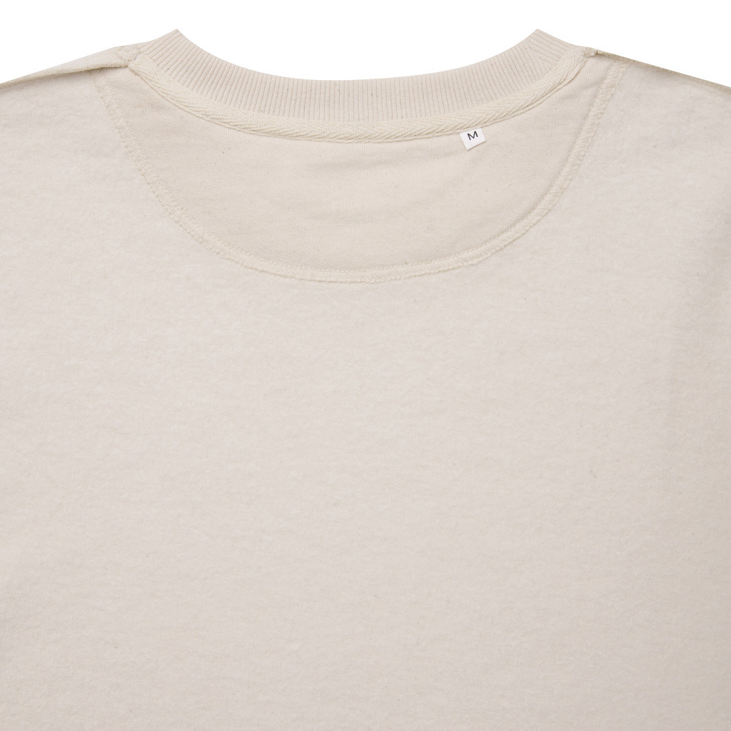Unisex relaxed fit crew neck made from 100% cotton, of which 50% recycled and 50% organic, in 340 G/M². The sweater has dropped shoulders, a round neckline, wider long sleeves and 2x2 rib. The inside is soft-brushed fleece for extra comfort. The use of genuine recycled & organic fabric materials and environmental impact claims are guaranteed, by using the AWARE™ disruptive physical tracer and blockchain technology. By scanning the QR code, you will gain access to a dedicated digital passport of the product. 2% of proceeds of each product sold will be donated to Water.org. This product is OEKO-TEX® STANDARD 100 Centexbel. certified. Due to the nature of recycled yarns, impurities and color variations may appear.