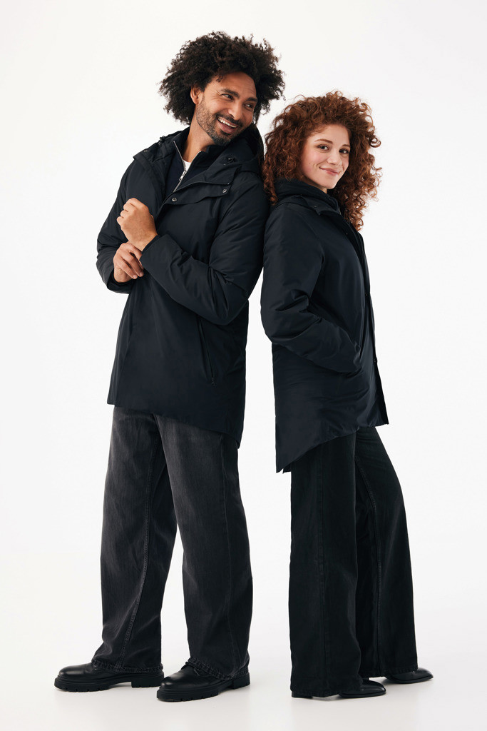 Unisex padded waterproof parka, made from 100% recycled polyester. The jacket is 4.000 mm waterproof, breathable and wind resistant. It has all features of a classic parka: longer back length, back slit, 2-way CF reversed zipper, covered by an extra front placket with four hidden snaps, clean sleeve cuffs with an extra inside half cuff, hood with stoppers at inside collar, horizontal deco seams. It is padded with 100% recycled polyester sheets and is lined with fine taffeta. On the inside there is a hidden zip at bottom hem and left wearer’s chest for easy decoration. Full garment is stitched with recycled polyester sewing thread. At back neck there is a tear-off size label with an iqoniq craft hangtag, care label at the left inside side seam. The use of genuine recycled fabric material and environmental impact claims are guaranteed, by using the AWARE™ disruptive physical tracer and blockchain technology. By scanning the QR code, you will gain access to a dedicated digital passport.