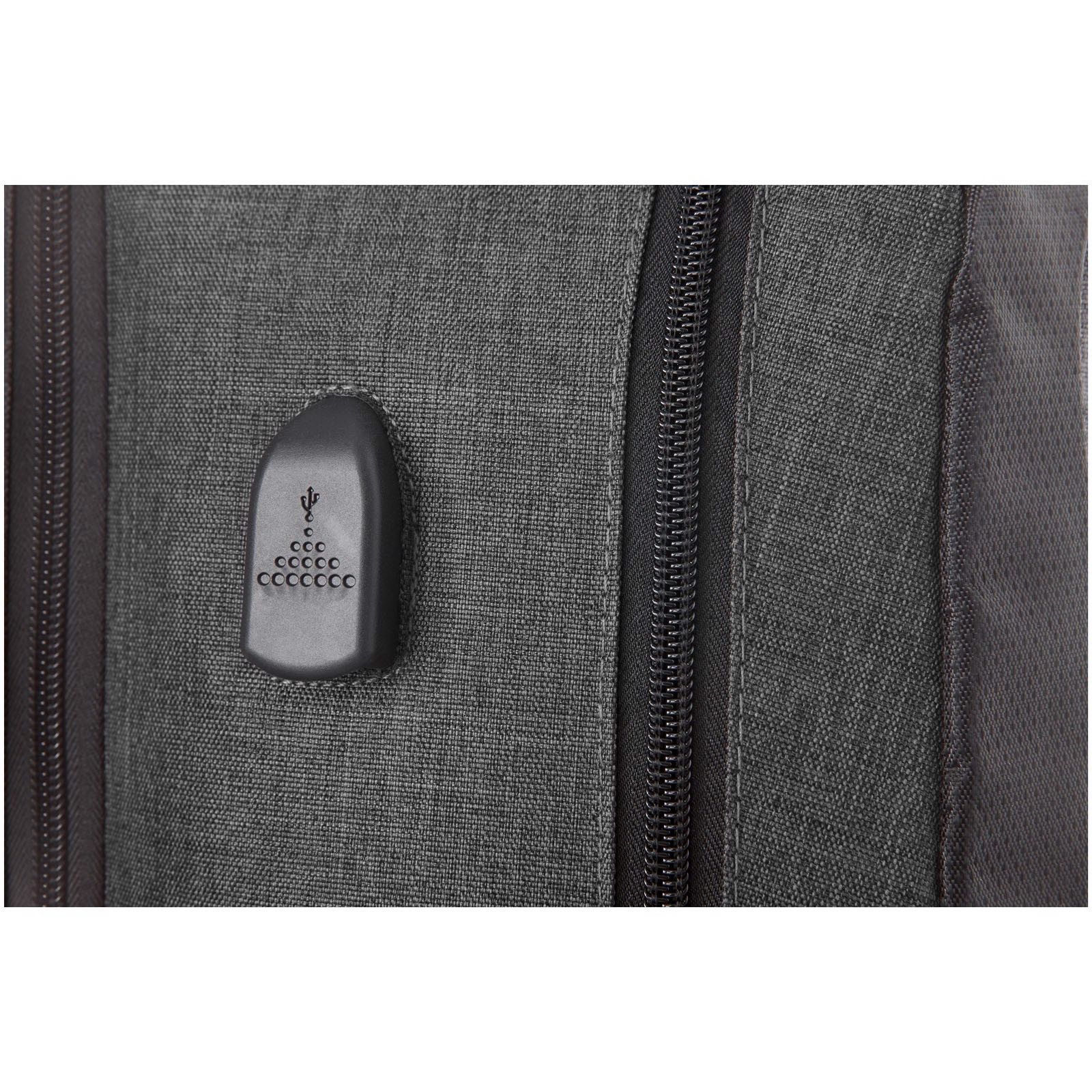 A sleek, 17" laptop backpack with USB port and cable. Equipped with RFID protection in side pocket, additional zippered pockets and a trolley strap on the back. The top and front grab handles and padded shoulder straps make it easy to carry around. There may be minor variations in the colour of the actual product due to the nature of the fabric dyes, weaves, and printing.