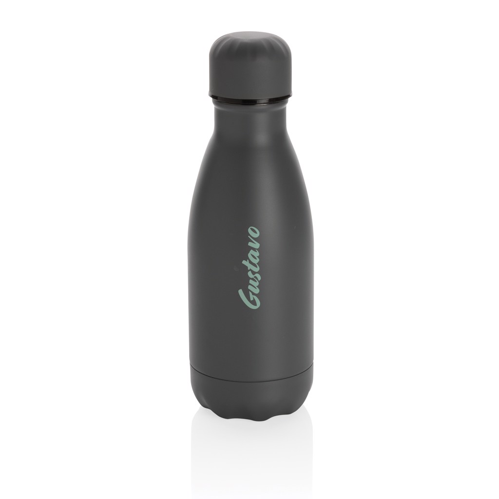 Elevate your daily water intake with this solid colour vacuum insulated stainless steel bottle. The bottle keeps chilled beverages cold for up to 15 hours and hot drinks warm for up to 5 hours. With a base that fits in most cup holders, this sleek looking water bottle will keep you hydrated on the go wherever you are. With its capacity of 260ml, it's ideal for kids or to pop into your bag.