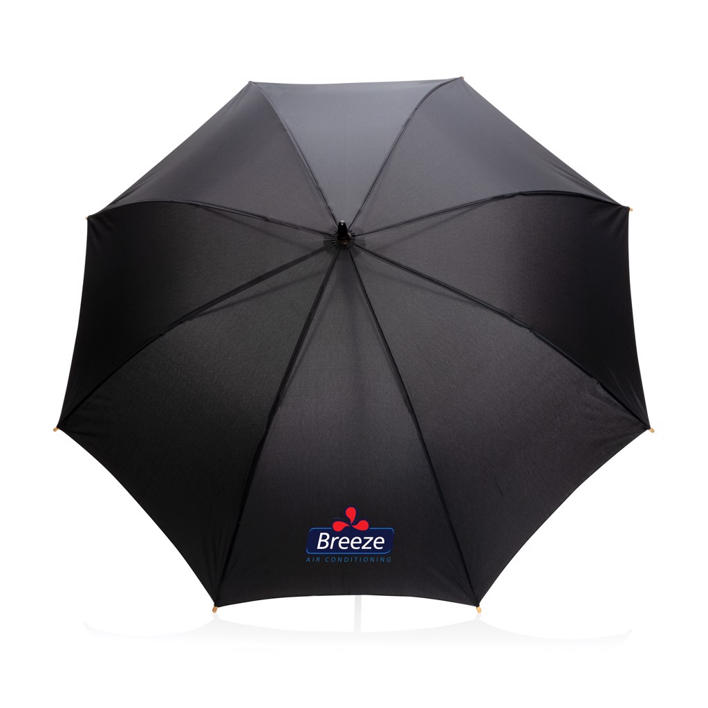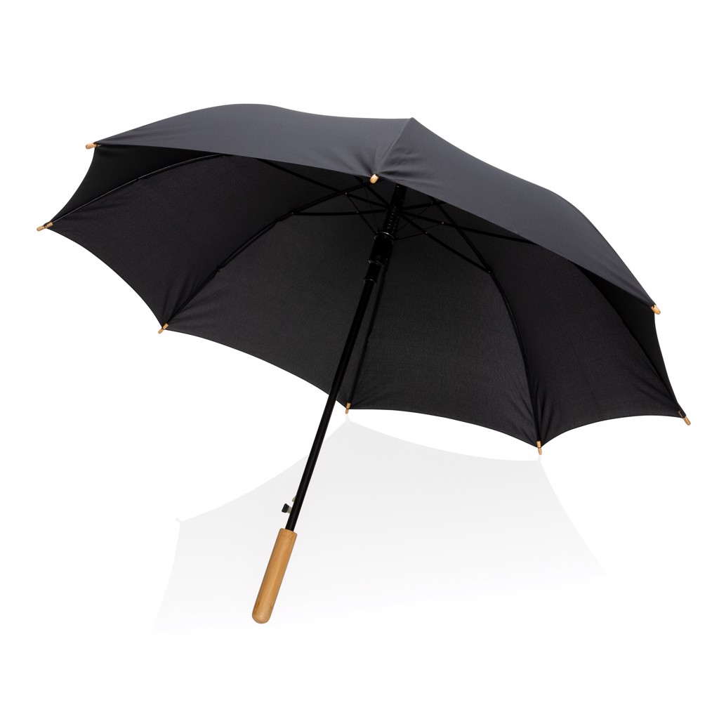 23" Impact AWARE™ RPET 190T auto open bamboo umbrella - Black