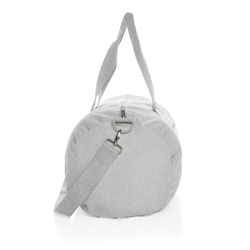 The Impact AWARE™ 285 gsm recycled canvas duffle bag undyed is the perfect way to carry your essentials for a short trip. This spacious duffle provides sufficient space for your essentials. The recycled canvas is undyed and used in its raw form, without chemicals from dyeing or bleaching. With AWARE™ tracer that validates the genuine use of recycled materials. 2% of proceeds of each Impact product sold will be donated to Water.org. Composition 70% recycled cotton, 30% recycled polyester.