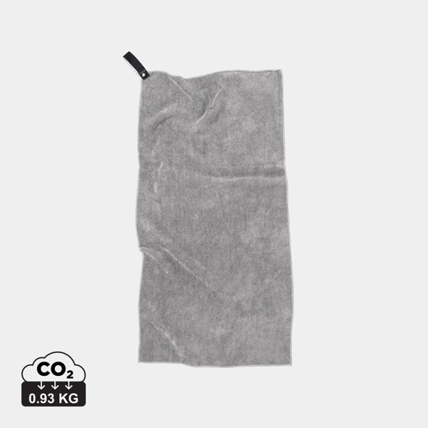 Made of microfibre and partially recycled PET bottles. Lightweight and compact. Its unique terry cloth structure can absorb more water and dries three times faster than a traditional towel. Ideal for outdoor activities, sports and travel. This size is excellent for use in the gym. Made from 50% GRS (Global Recycle Standard) certified recycled materials, with GRS certification guaranteeing fully certified supply chains of recycled materials. Total recycled content based on total product weight.